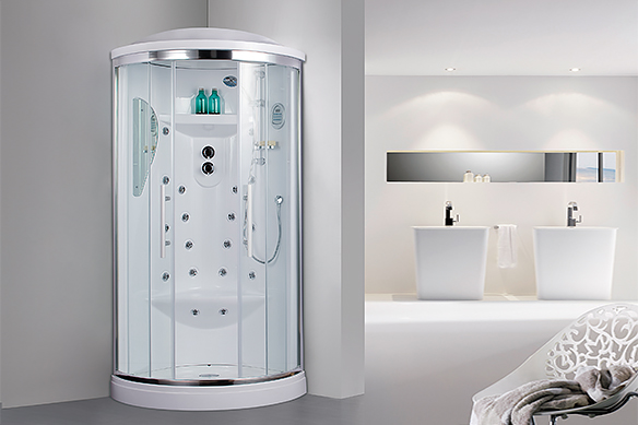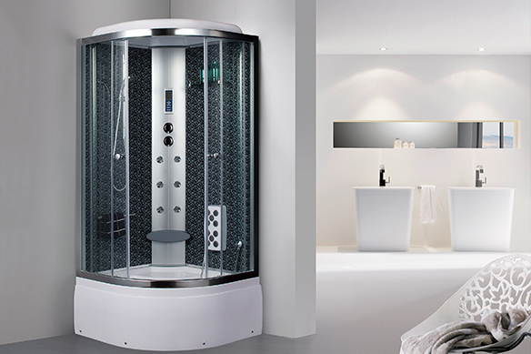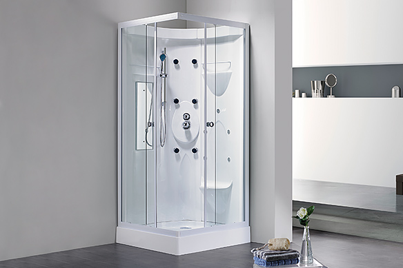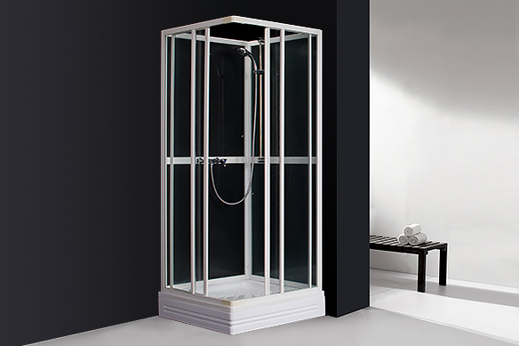 A complete shower space consisting of four-sided glass, available in a variety of styles (sliding doors, piv