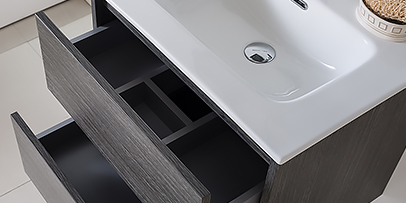 The MD915 range captivates with its straight lines and uncomplicated appearance. The intentional back-to-basics approach of these furnishings gives the range an air of clarity and a timeless character. As well as various wood finishes, matt and glossy laminated lacquer surfaces are also used, which offer a very unique haptic experience.
