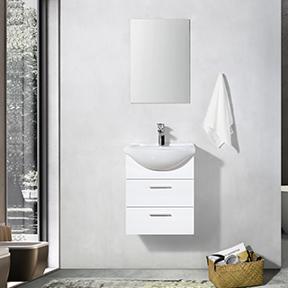 High gloss white cabinet vanity unit with ceramic basin, make the most of your bathroom with our practical and attractive white gloss furniture options. All white gloss vanity units feature a high quality ceramic basin. Providing a practical storage solution to suit most needs, especially where space is at a premium.