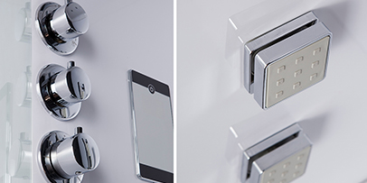 "White Space" gives a good idea of a pleasant personal Spa, with its dorsal massage jets and steam dispenser for saunas, where you can enjoy moments of complete relaxation and renewed vitality.The white of the 98 series blends with the harmonious and minimal forms of the structures, to leave full space for the diffusion of colored lights, activated by LEDs.