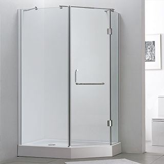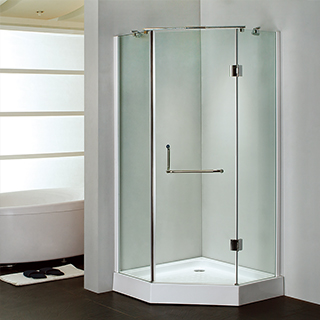 A shower enclosure with the hinge door,zinc alloy supporting bar in chrome platedtop tie rod design make the structure stronger.