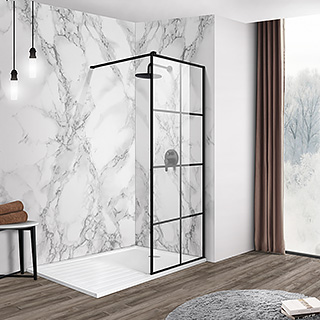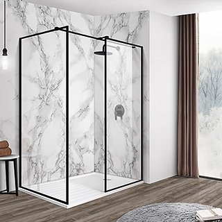 walk-in shower enclosures,clear minimalistic design,make for simplistic yet sophisticated shower enclosures.New product with the black line pattern, makes each shower area a true work of art.