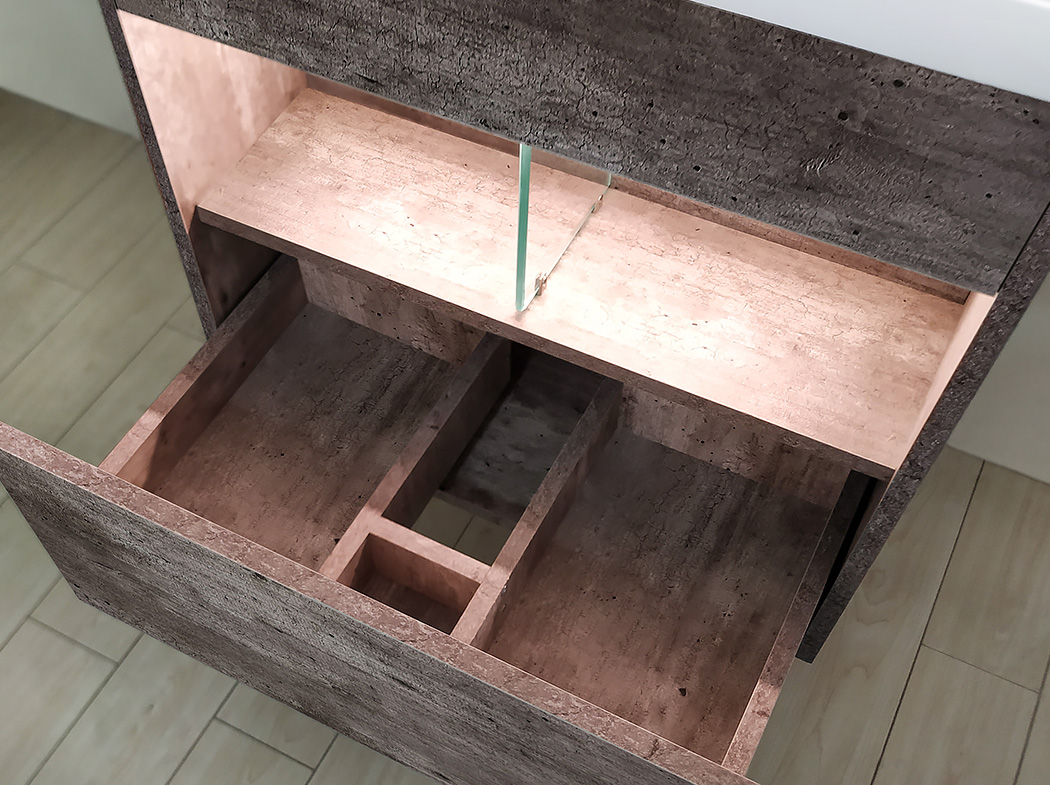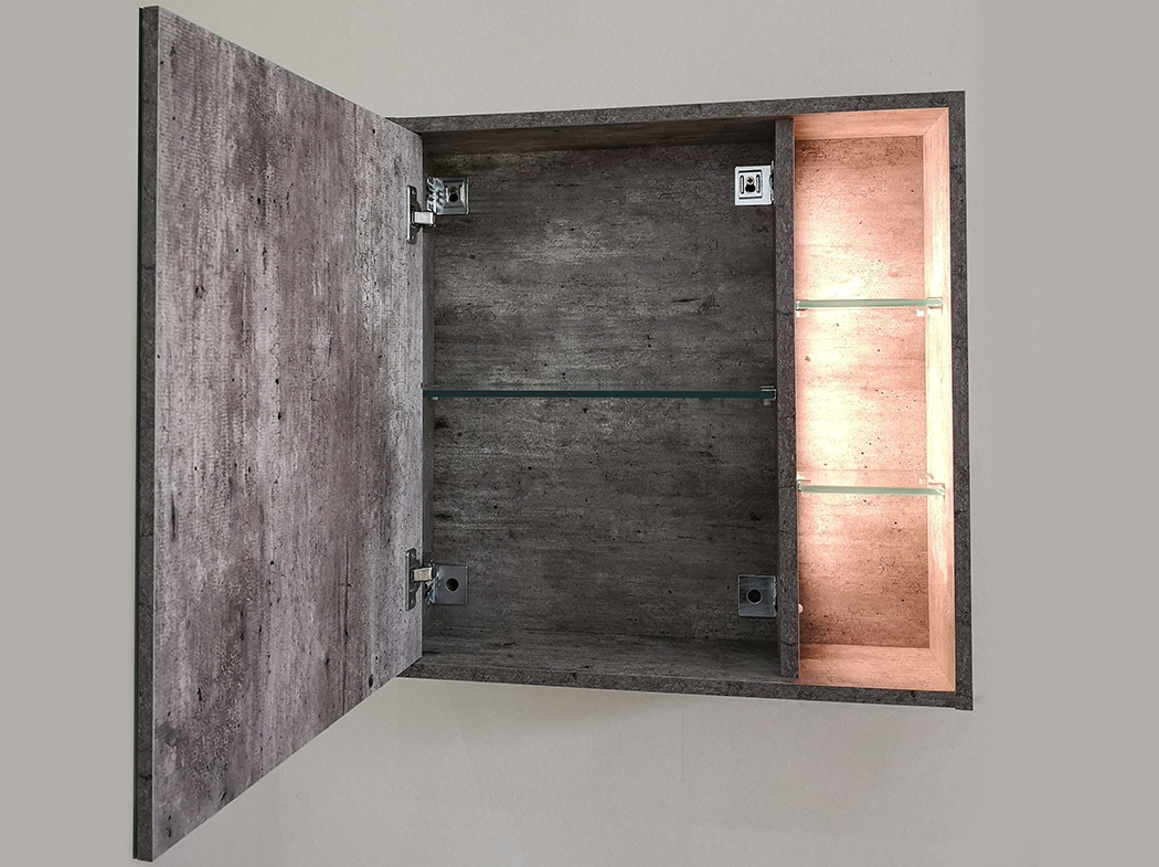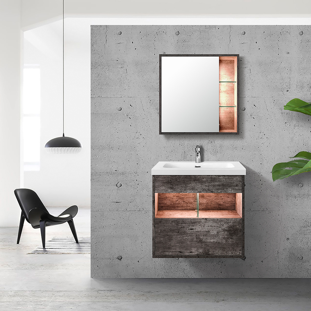 - Main cabinet and mirror cabinet with LED light