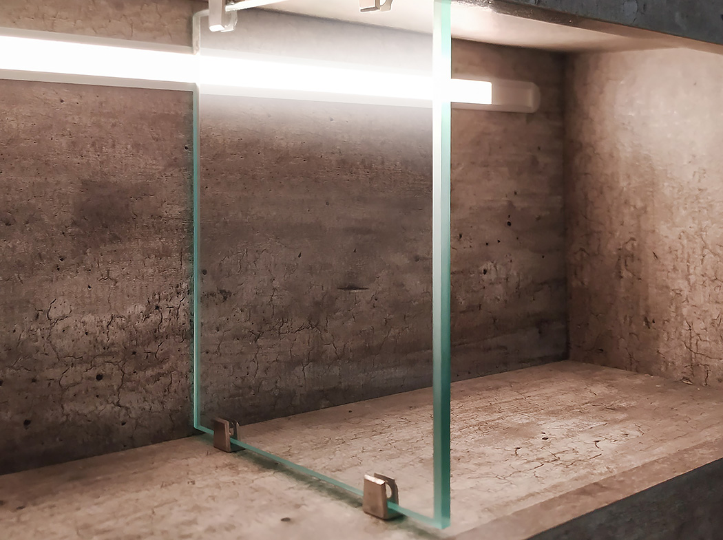 - Main cabinet and mirror cabinet with glass shelf