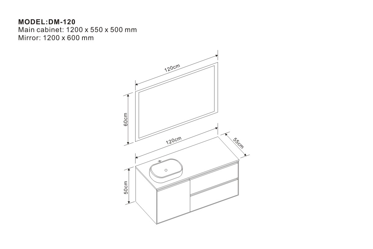 Main cabinet: 1200 x 550 x 500 mm