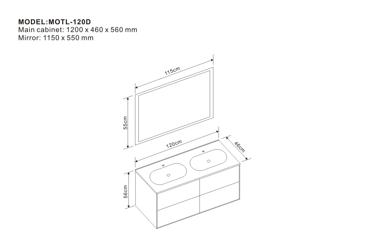 Main cabinet: 1200 x 460 x 560 mm