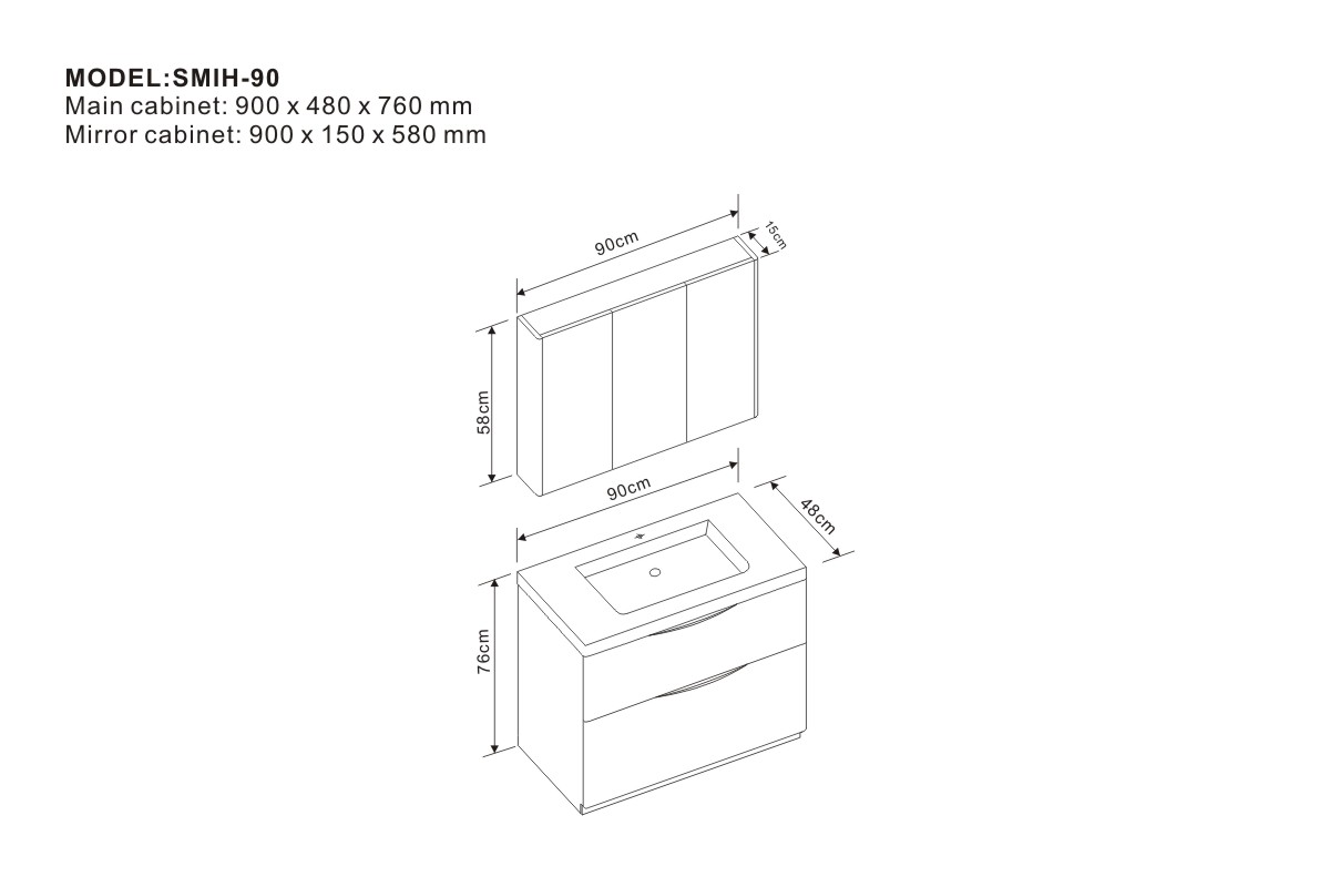 Mirror cabinet: 900 x 150 x 580 mm