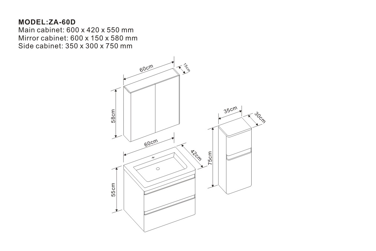 Main cabinet: 600 x 420 x 550 mm