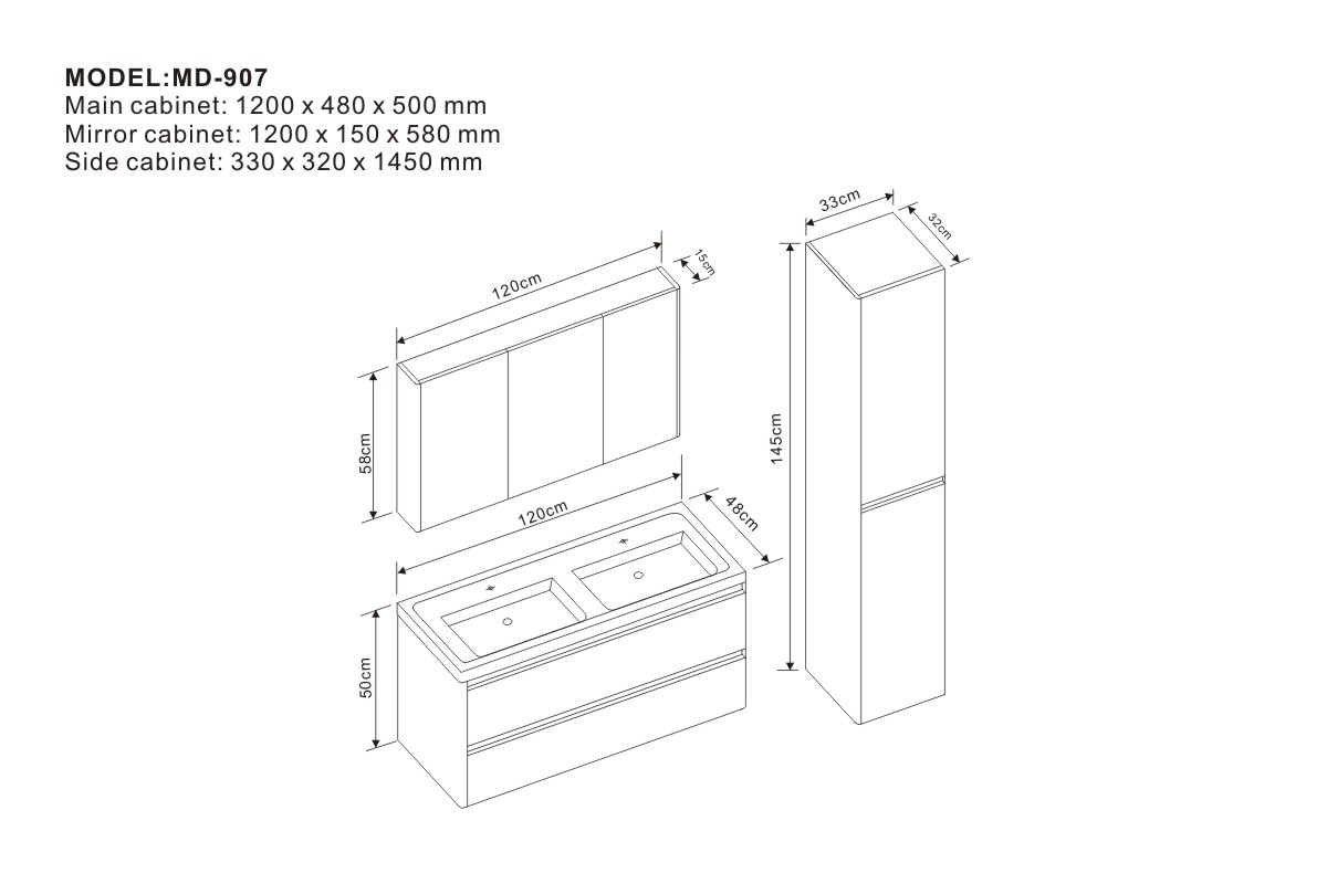 Main cabinet: 1200 x 480 x 500 mm