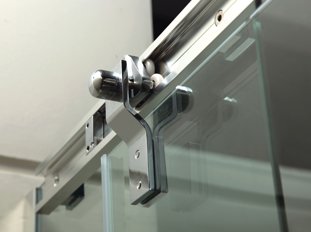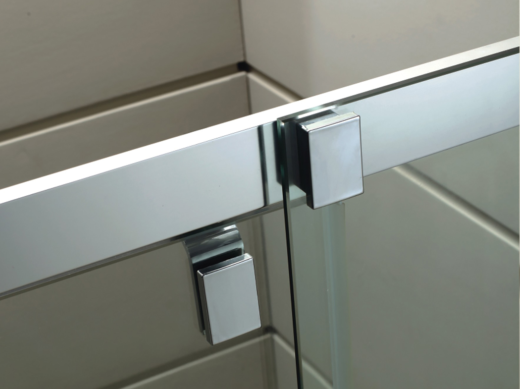 Wall-to-glass hinge in plastic |