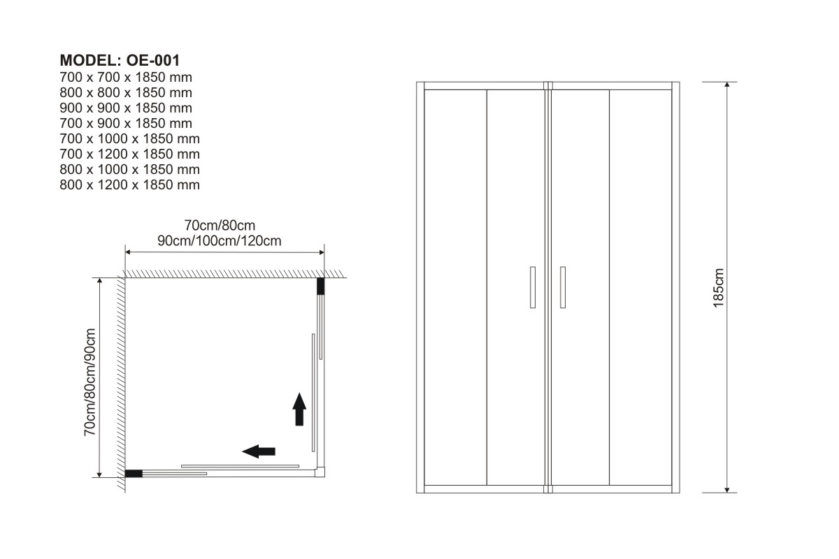 700 x 700 x 1850 mm
