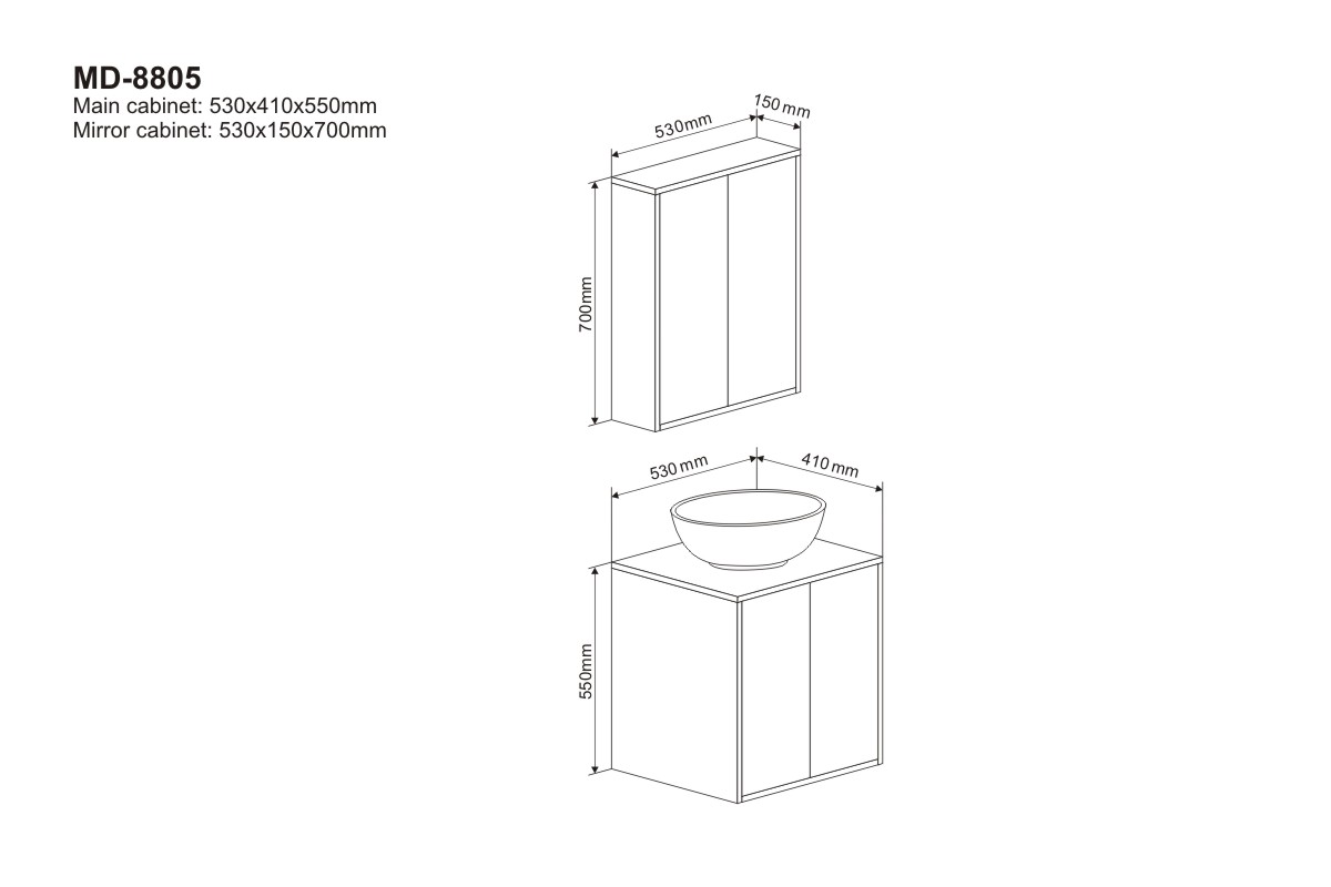 Main Cabinet: 530*410*550 mm