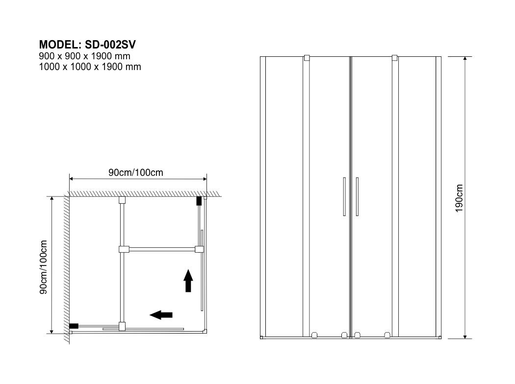 1000 x 1000 x 1900 mm
