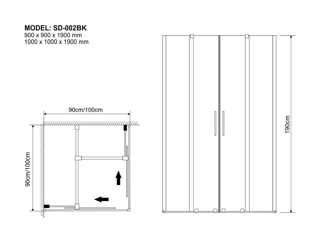 1000 x 1000 x 1900 mm