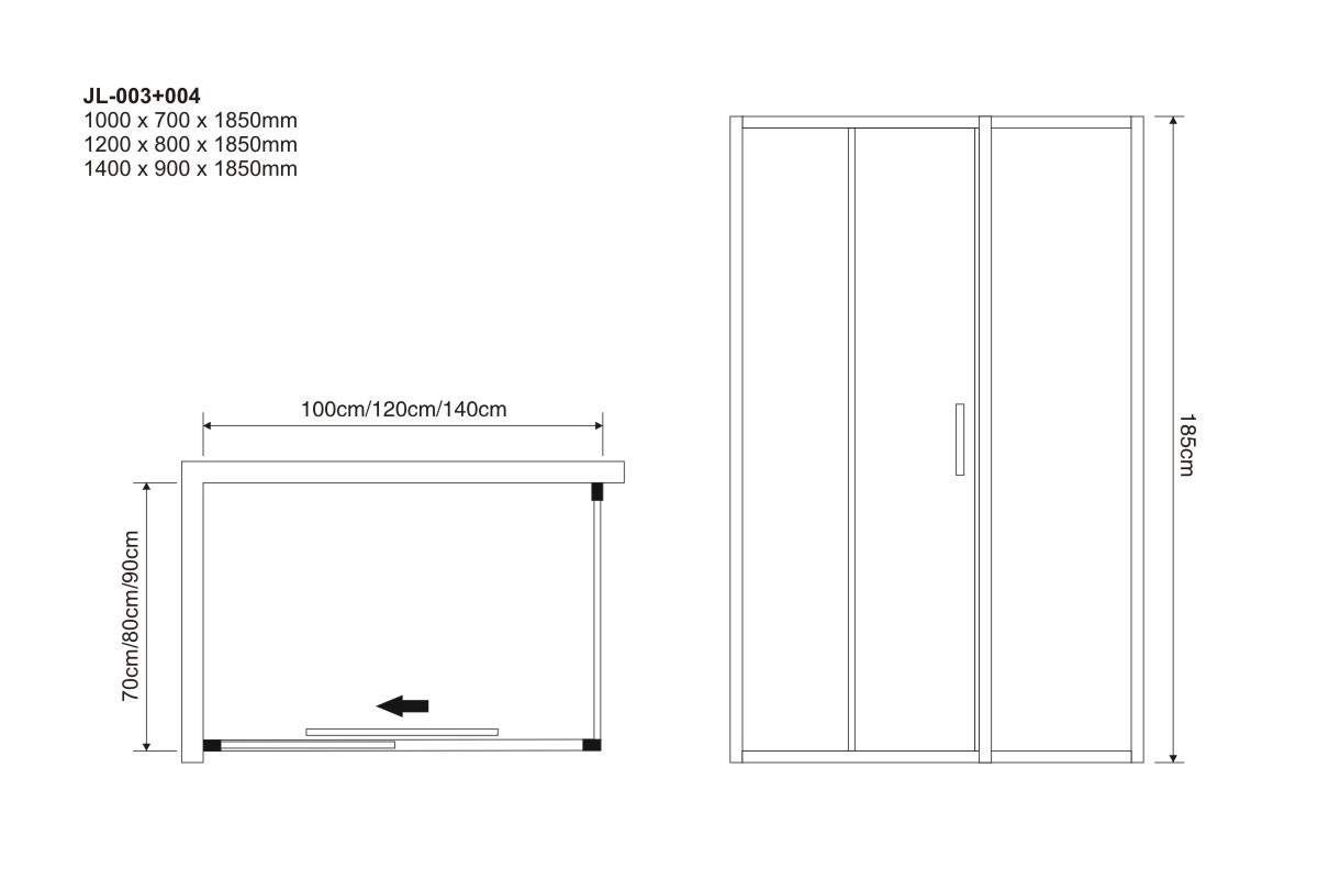 1000 x 700 x 1850 mm