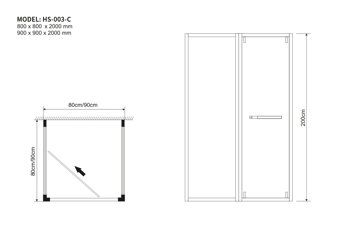 900 x 900 x 900 x 2000 mm