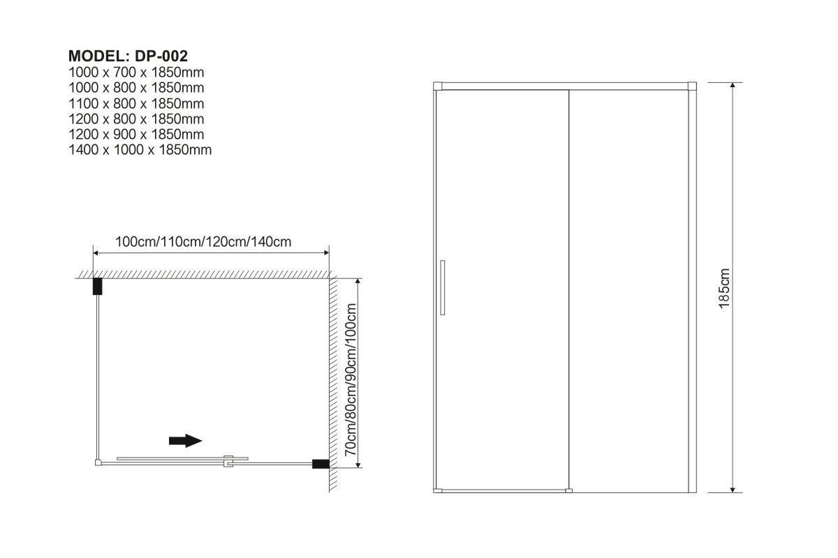 1000 x 800 x 1850 mm