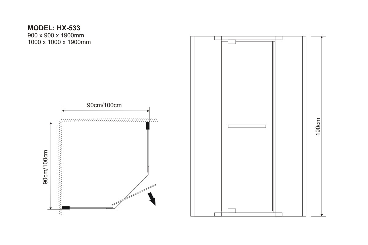1000 x 1000 x 1900 mm
