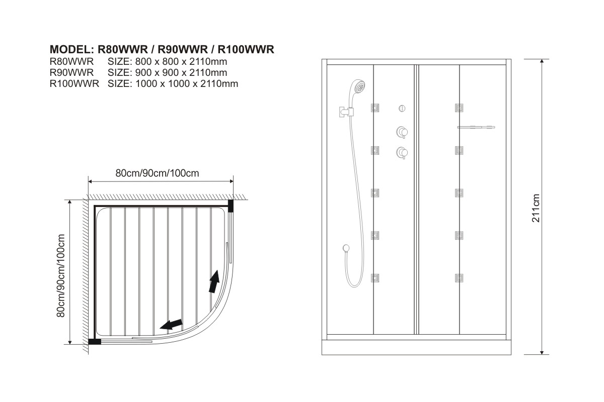 R90WWR SIZE: 900 x 900 x 2110 mm