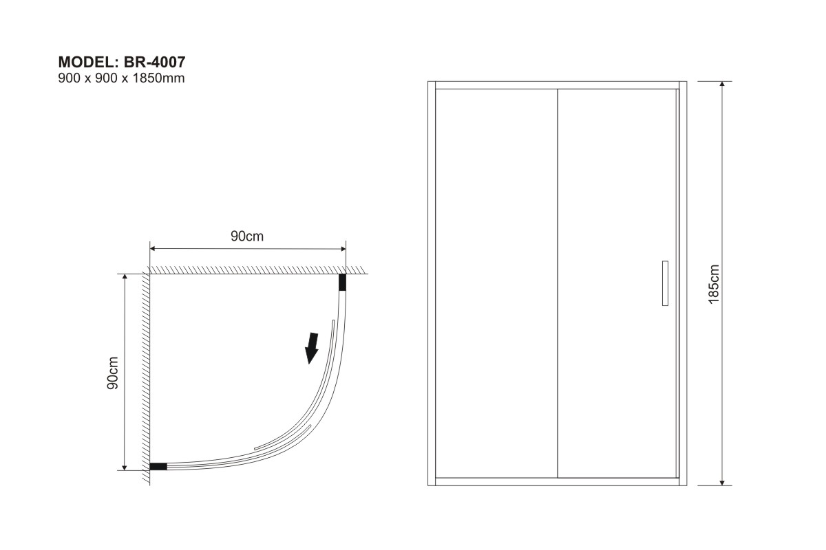 900 x 900 x 1850 mm