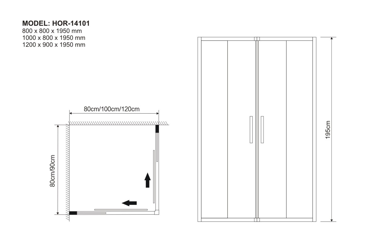 1000 x 800 x 1950 mm