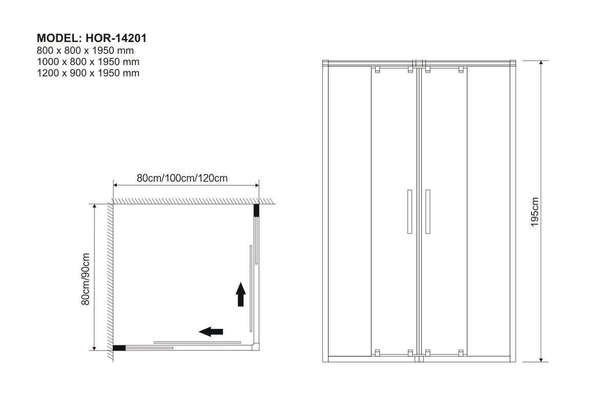 1000 x 800 x 1950 mm