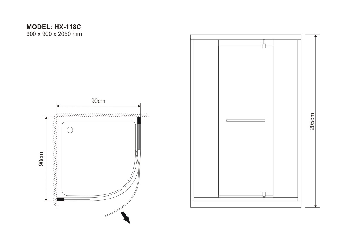 900 x 900 x 2050 mm