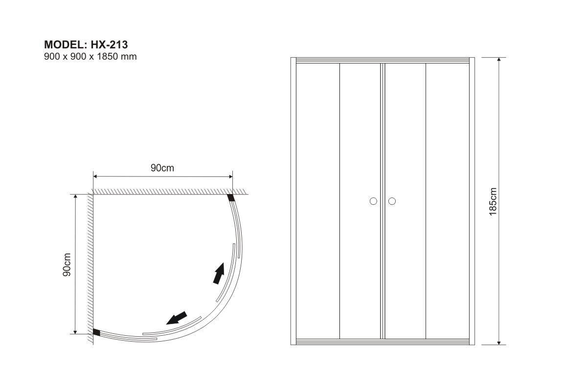 900 x 900 x 1850 mm