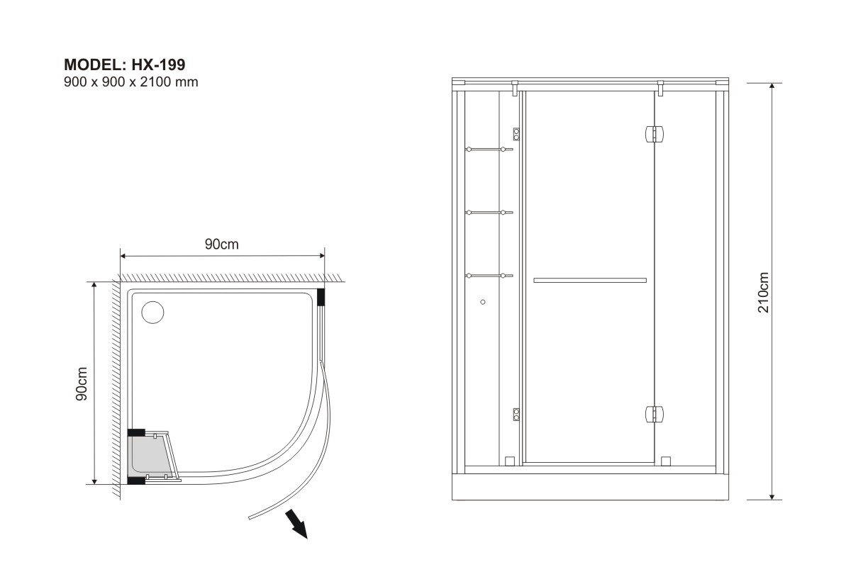 900 x 900 x 2100 mm